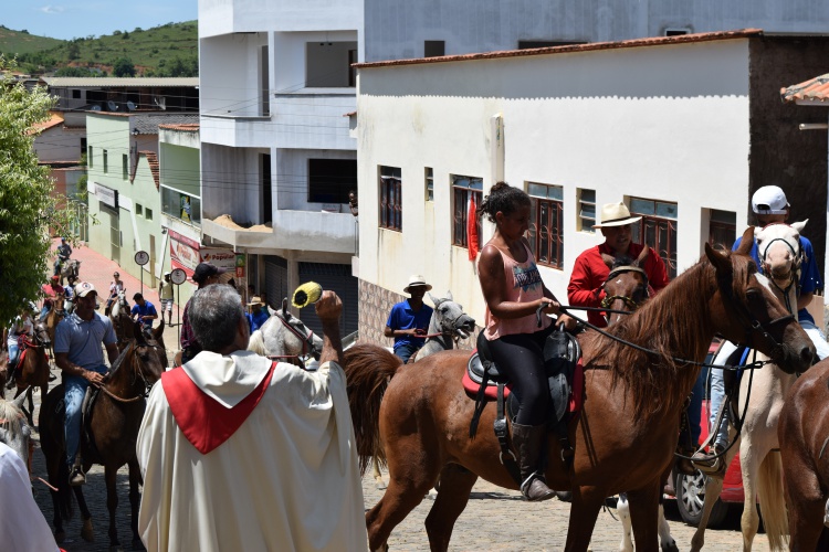 O cortejo em reverência ao santo começou na Matriz Jesus, Menino Deus e passou pelas principais ruas da cidade até chegar a Capela de São Sebastião, no bairro Machados. Na chegada os animais foram abençoados pelo Pe. Edison Campos.