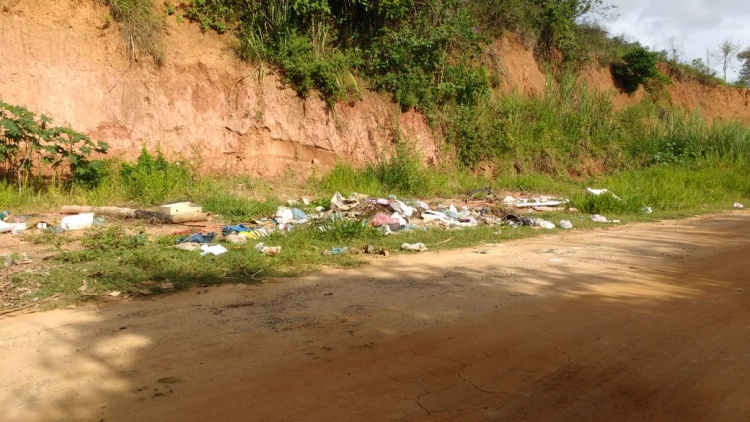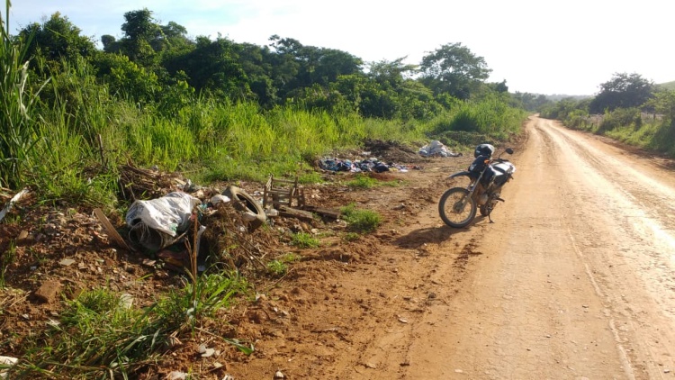 Outro local que voltou a ser ponto de descarte irregular de materiais é a estrada Recreio-Abaíba (foto abaixo), próximo ao acesso a Cohab Dr. Irajá José Fernandes (bairro José Taranto Luz). Ali o problema é antigo.