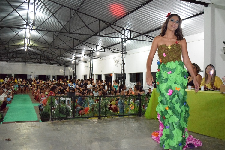 Nesta edição com o tema “Natureza” o concurso envolveu 8 candidatas do ensino médio e do curso Normal (Magistério). As roupas foram confeccionas com materiais recicláveis e com muita criatividade as candidatas arrancaram aplausos do público e impressionaram os jurados.