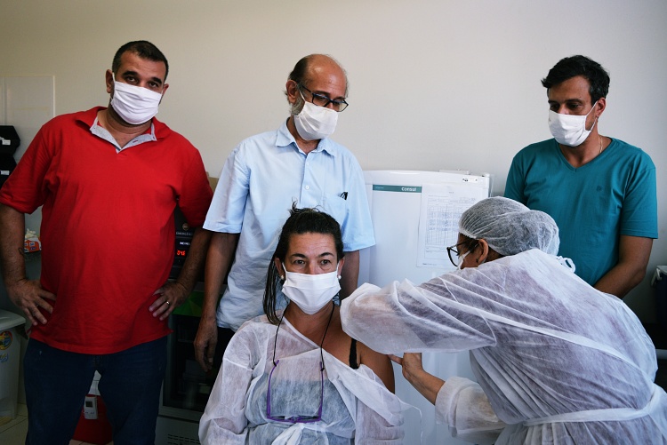 O município recebeu 43 doses do Governo Estadual, através da Gerência Regional de Saúde. A vacina CoronaVac é fabricada pelo Instituto Butantan, de São Paulo, em parceria com a biofarmacêutica da China, Sinovac.