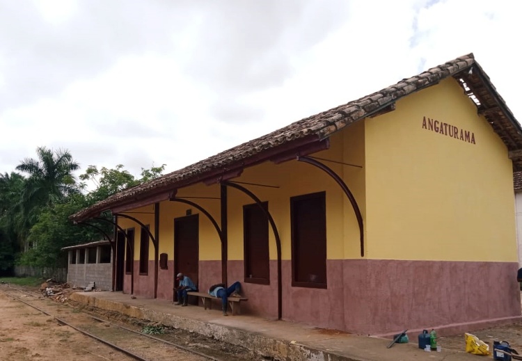 A antiga estação ferroviária do distrito de Angaturama recebeu uma nova pintura e pequenos reparos realizados pela equipe da Secretaria Municipal de Desenvolvimento Urbano.