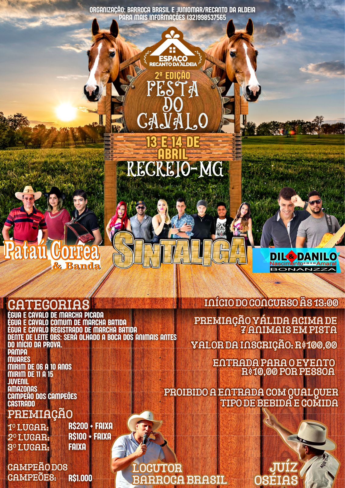 A organização é de Barroca Brasil e Juniomar do Espaço Recanto da Aldeia.