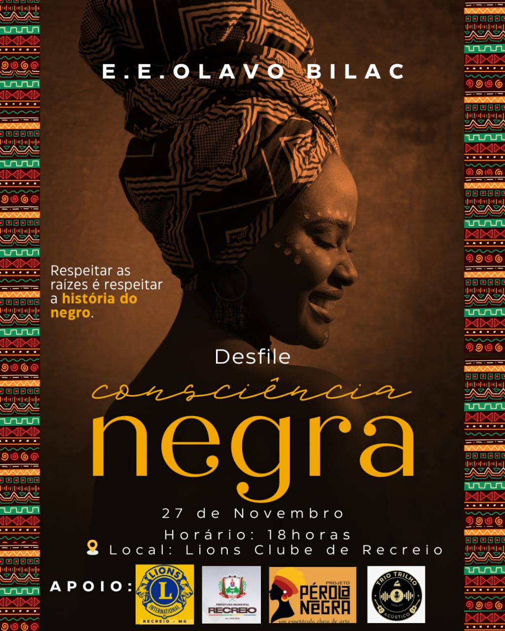 A E.E. Olavo Bilac vai promover um evento em referência ao dia da “Consciência Negra”, nesta quinta-feira (27), a partir das 18h, no Lions Clube de Recreio. A entrada será 1 kg de alimento não perecível.