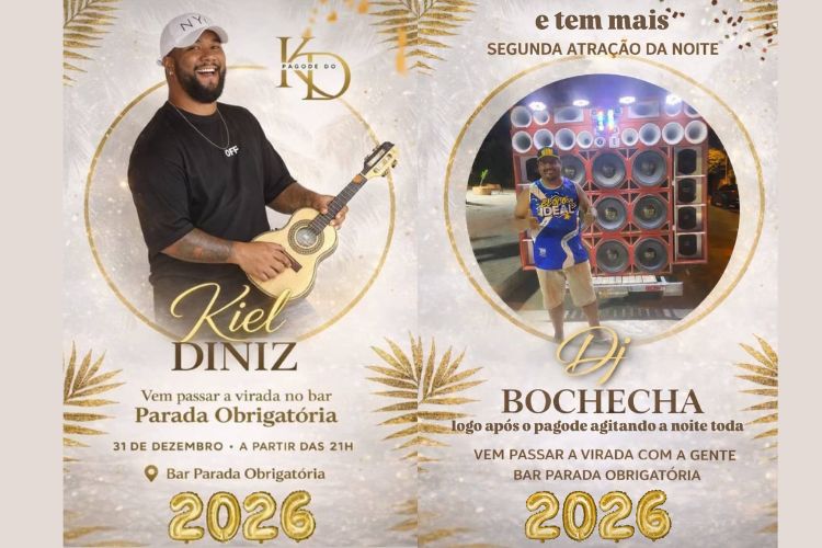 O show de pagode será com Kiel Diniz e a música eletrônica com DJ Bochecha.